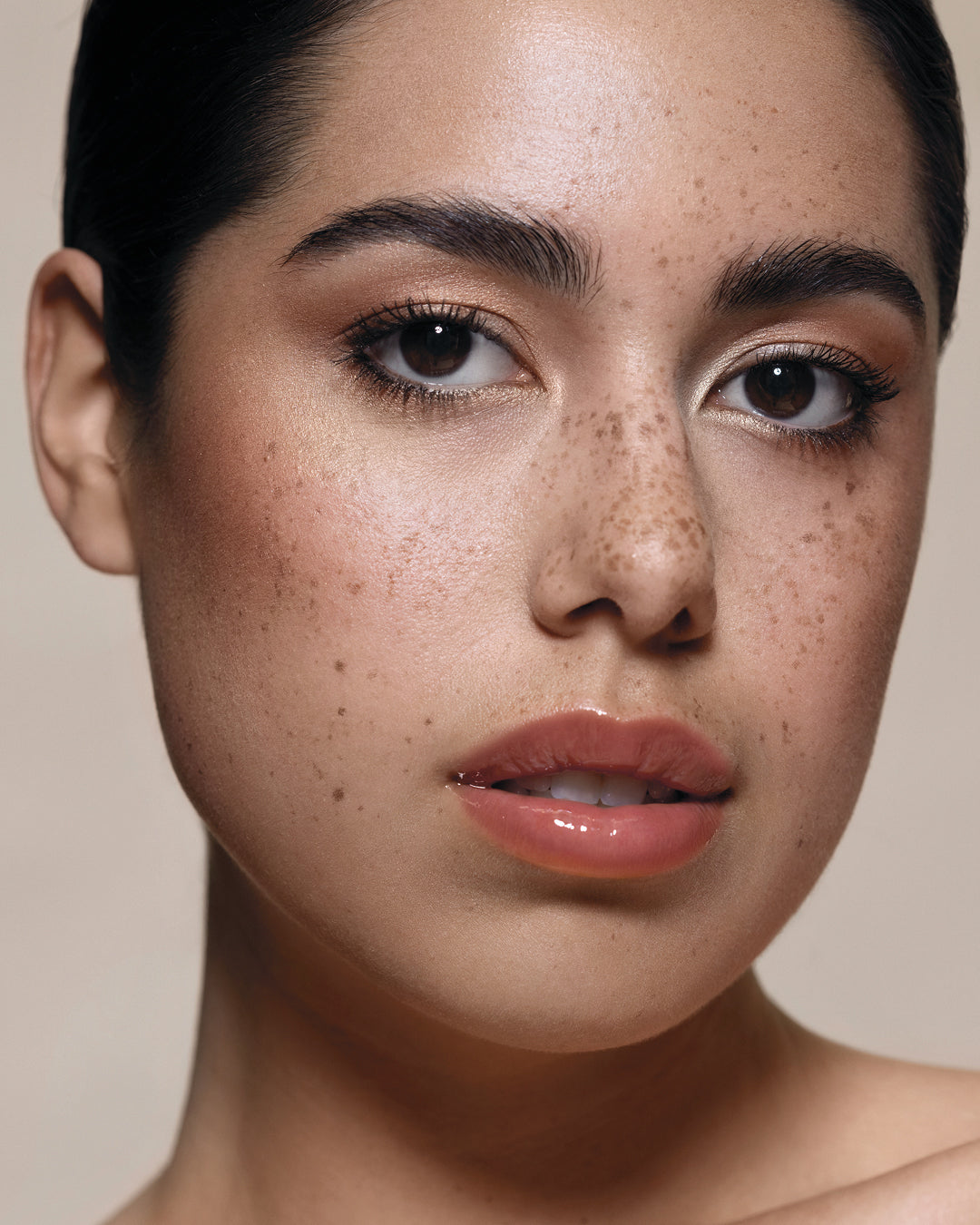 and freckles kissed by the sun.