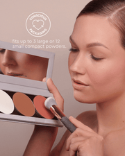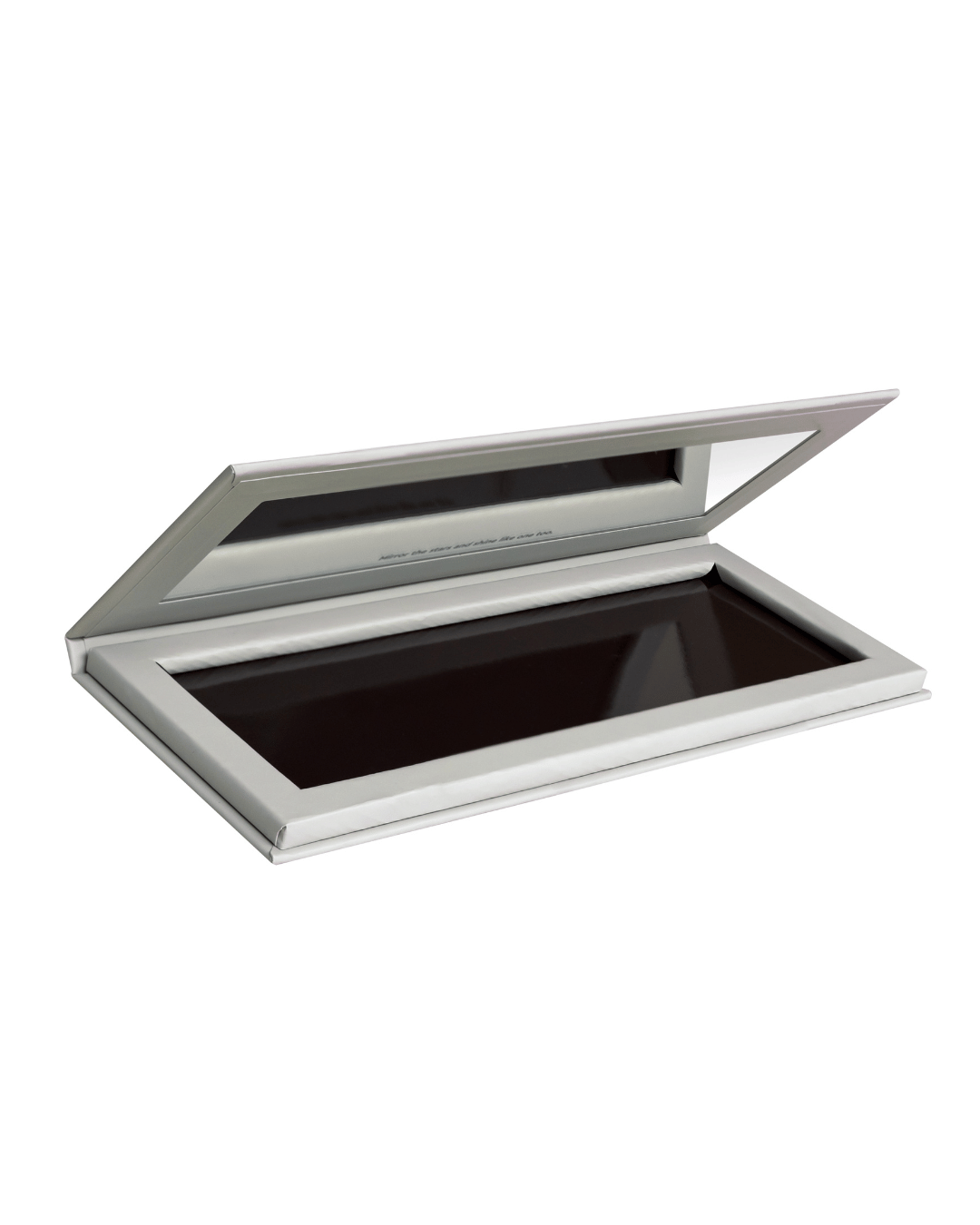 In dit palet passen tot drie grote compacte poeders (zoals compacte foundation, highlighter, blush, …) of 12 kleine compacte poeders (compact eyeshadows).