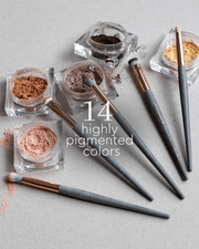 pure, 100% mineral eyeshadows available in 14 highly pigmented shades.