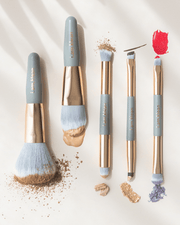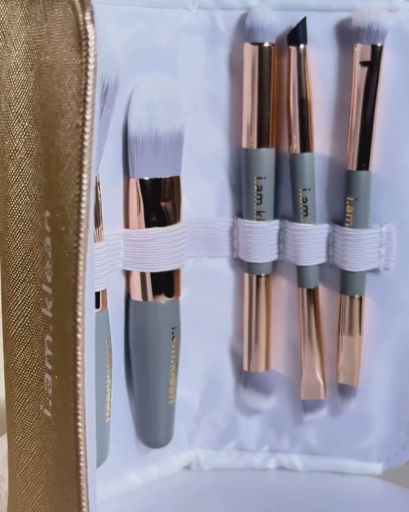 Ik was aangenaam verrast over de compacte vorm van het tasje zonder dat de borstels aan formaat moeten inboeten. De borstels zijn lekker zacht, voelen goed op de huid en liggen goed in de hand en het totale pakketje ziet er ook heel mooi uit.